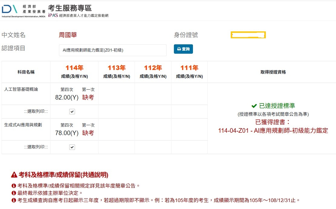 - 評量方式及配分:期中考、期末考,各佔30%;平時成績(含各項作業及課程互動),佔40%;iPas AI 鑑定考試(初級)每通過一科,加8分