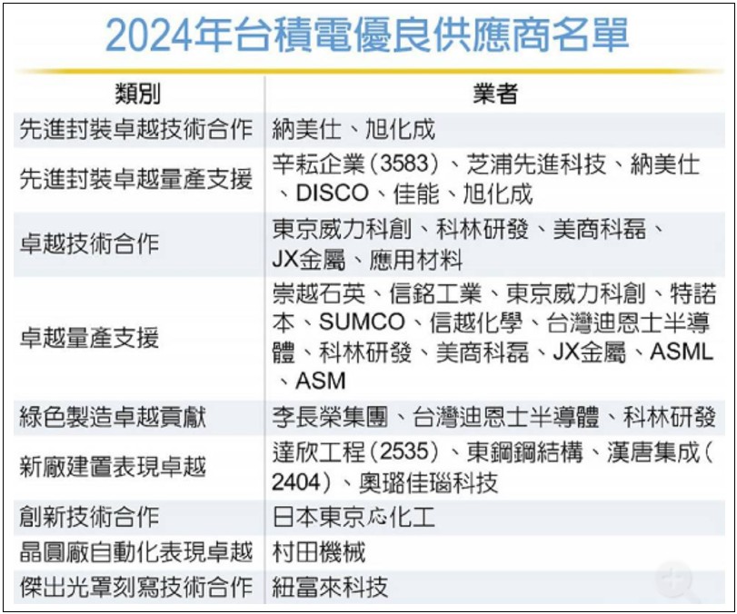 - 參考資料2:台積電優良供應商名單 (2024/12/3 工商時報整理)