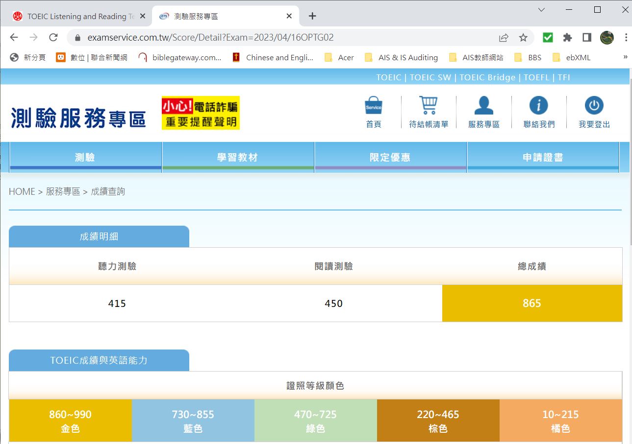 - 2023/4:多益聽讀測驗(金色證照) 參考資料 (周老師Vocus文章分享:大齡考生的多益經驗)