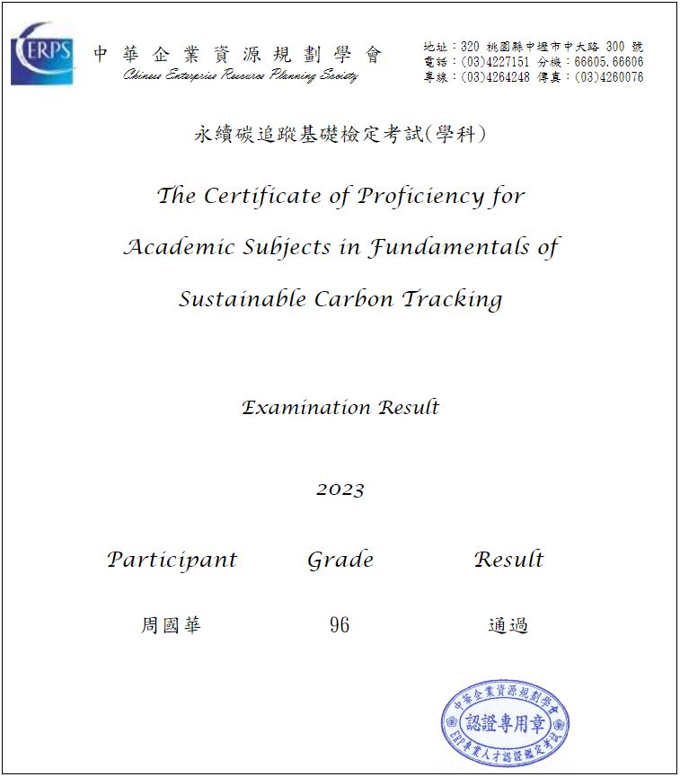 - 2023/3:永續碳追蹤基礎檢定考試-學科 (The Certificate of Proficiency for Academic Subjects in Fundamentals of Sustainable Carbon Tracking) 參考資料