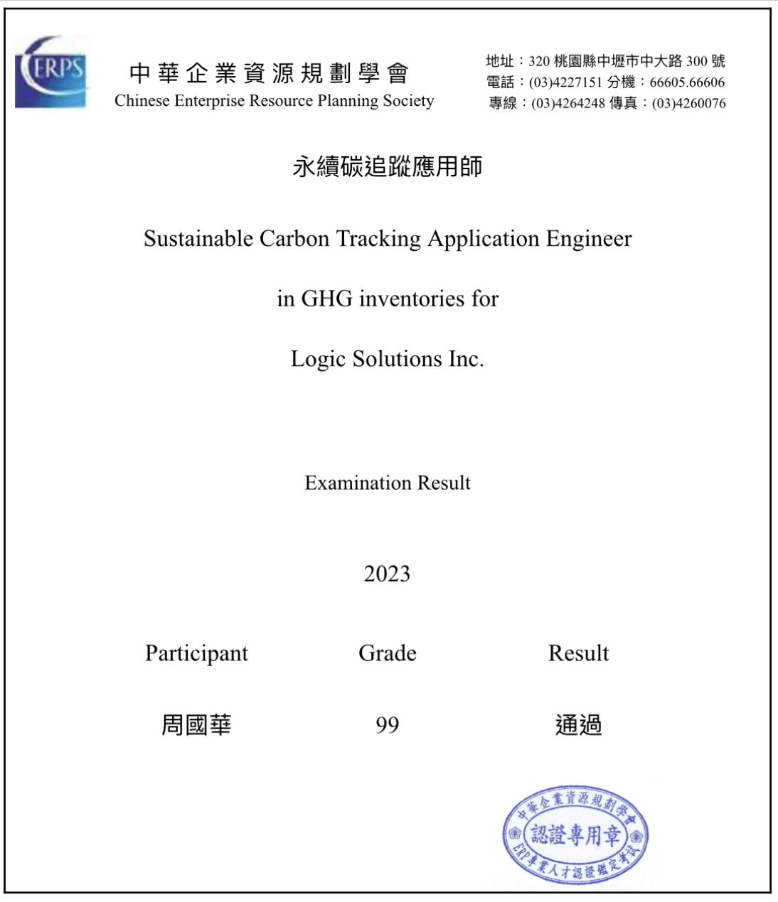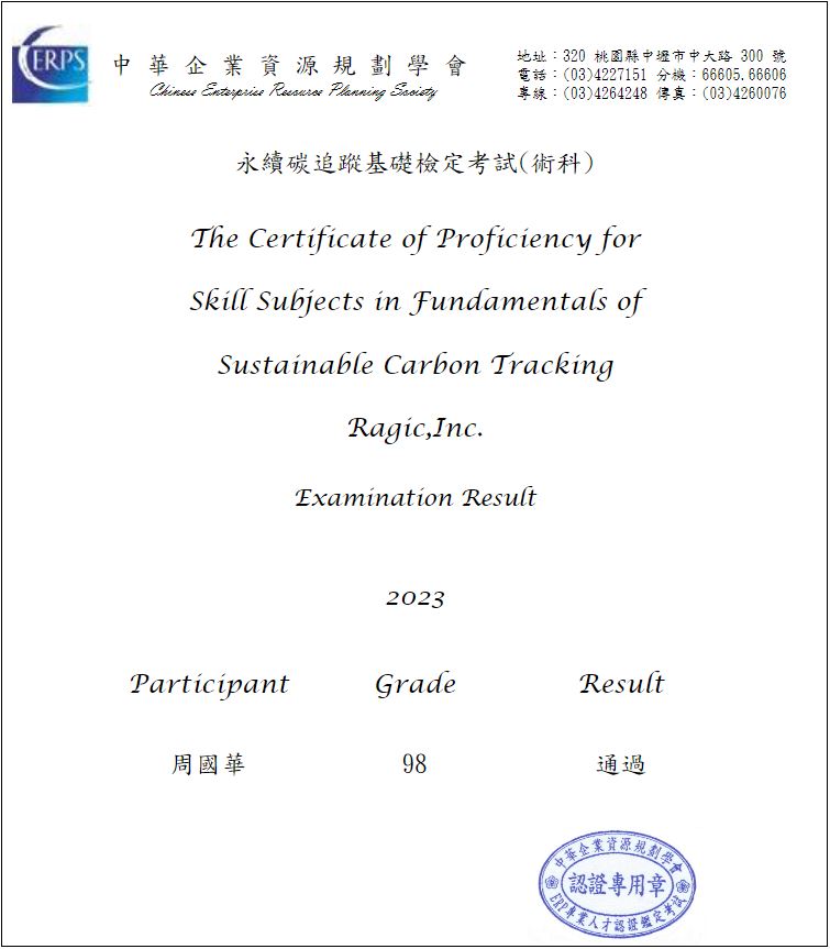 - 2023/3:永續碳追蹤基礎檢定考試-術科 (The Certificate of Proficiency for Skill Subjects in Fundamentals of Sustainable Carbon Tracking, Ragic, Inc.)